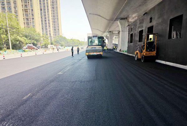 我公司承接了该项目的第三标段的沥青路面施工工程,包含沥青混凝土的生产、运输、摊铺、碾压工作,施工全长3118.489m,该段快速路为高架快速路+地面系统的敷设形式(起点位于菖蒲路以北,与四标终点处主线桥梁以及地面辅道衔接,终点位于习友路以北桥隧衔接处,与二标起点相接)。其中地面道路结构为,机动车道(地面机动车道新建段,辅道,匝道挡墙段,交口补铺、绿化带硬化):8cmAC-25C+6cmAC-20C改性+4cmAC-13C改性;机动车道(老路利用段铣刨加铺):6cmAC-20C改性+4cmAC-13C改性;非机动车道:5cmAC-16F+3cmAC-10F。桥梁道路结构为,钢桥面:4.0cm 高粘高弹改性SMA-13(RST+70号A级道路石油沥青)+4.0cm高粘高弹改性 SMA-10(RST+70号A级道路石油沥青);土桥面:4cmSBS改性SMA-13沥青玛蹄脂碎石沥青混凝土+6cm中粒式SBS改性AC-20C 沥青混凝土。