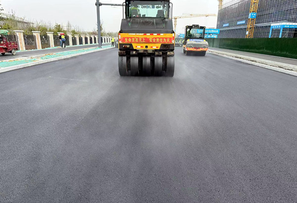 我司主要负责沥青砼面层工程施工,含沥青砼的生产、运输、摊铺、碾压成型。其中人行道结构层为:5cmAC-16+3cmAC-10(彩色)。