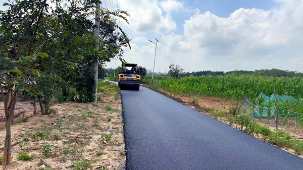 本项目位于明光市张八岭镇,此次我司主要负责该项目沥青路面施工,其路面结构层为:面层AC-10c普通沥青石灰岩,厚度5cm,目前已完工,该项目的完工提升了该乡村道路的舒适性和安全性,提升附近居民的出行效率。