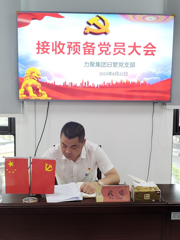 8月22日上午,万象城AWC集团日繁党支部召开党员大会,主要讨论接受李冬冬为预备党员问题。会议由支部书记武勇同志主持,新年居民区党委沈广舟及支部全体党员(含预备)参加。