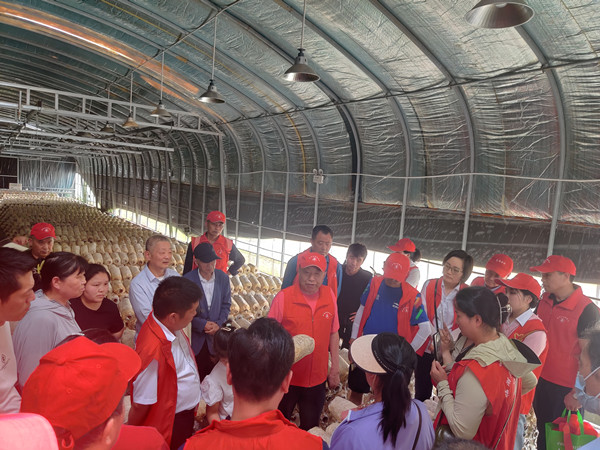 5月13日下午,参观队伍来到了活动第二站——安徽天都灵芝制品公司蘑菇种植基地。在基地,大家现场参观并聆听了安徽天都灵芝制品公司总经理、中国好人、蘑菇大王丁伦保介绍蘑菇的营养价值、种植技术、品质鉴别方法以及他的扶贫助残的故事。丁总鼓励残疾人朋友们要多走出家门、多接触社会,跟上时代发展步伐,此外,他勉励残疾人朋友们要自立、自强,并表示愿意无保留地向他们传授蘑菇种植技术。