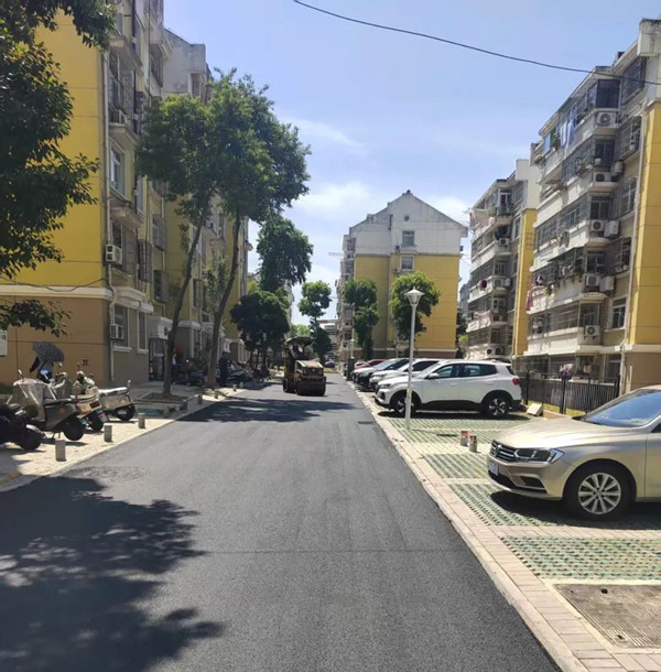该项目位于合肥市高新于科学大道与海棠路交口兴园小区南区内。主要建设内容为道路新建、道路绑宽及面层加铺、住宅首层外立面改造、围墙改造、新建大门及岗亭、邻里中心内部装饰改造、室外照明改造、弱电工程改造、绿化改造、景观小品改造以及侧石更换、室外雨污水改造等配套工程。我司负责该项目的沥青路面摊铺,总面积约为六万平方。道路结构设计为:8cmAC-10,截止到目前,该项目尚未完工。