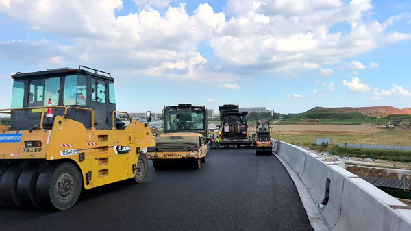该项目位于合肥市蜀山区,我司主要负责该项目沥青路面摊铺,本次施工桥梁路面结构设计为:6cmAC-16c+4cmSMA-13(SBS改性),项目总面积约为10万平方,截止到目前,该项目仍在施工中。