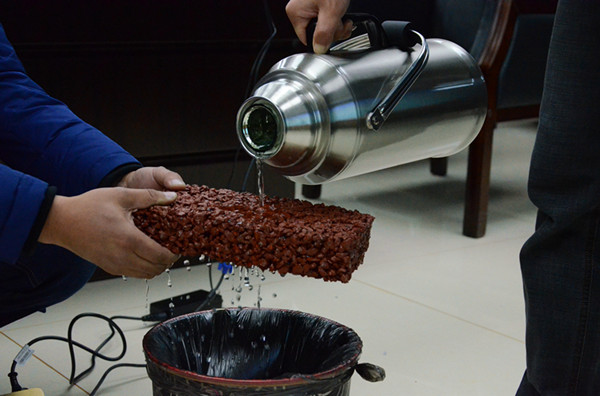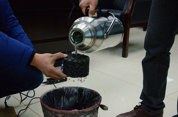 周骏表示,下一步创研中心将落实行动,前往各子公司收集特殊沥青实验数据的第一手资料,一定要找出成熟的彩色沥青和排水沥青研制方法。随后,周骏在会上以演示文稿形式详细讲解了彩色沥青与排水沥青的施工工艺和技术解析。各创研中心成员分别携带了其所在实验室研制出的彩色沥青实验模板,在会议现场作沥青的透水性演示,并就彩色沥青的拌合情况、颜料选用、温度控制等方面进行讲解。