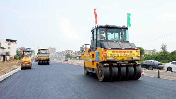 我司主要担任该项目的道路施工,主要范围为:沥青砼工程施工,包含沥青砼的生产、运输、摊铺、碾压成型。其中沥青采用8cm厚沥青砼AC-25进行铺筑施工底层,6cm厚AC-20SBS改性沥青铺筑中面层,4cm厚AC-13SBS改性沥青铺筑施工面层,工程量约为46600吨。目前,项目正在有序施工。
