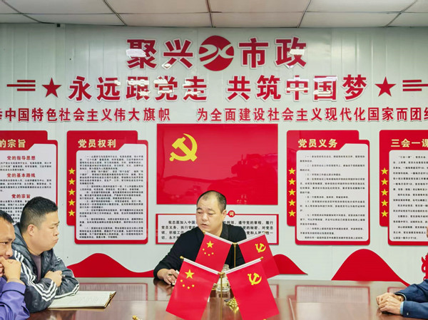 2025年10月25日下午15时,阜阳聚兴市政工程有限公司召开10月工作例会暨安全会议,会议由总经理储晓星主持,副总赵辉、各部门负责人、民工队负责人和全体员工参加。