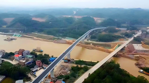 作为西部陆海新通道骨干工程,平陆运河全长约140公里,起于南宁横州市平塘江口,经灵山陆屋镇入钦江南下,终接钦州港通江达海,建成后将成为西南地区连接东盟的水运大动脉。